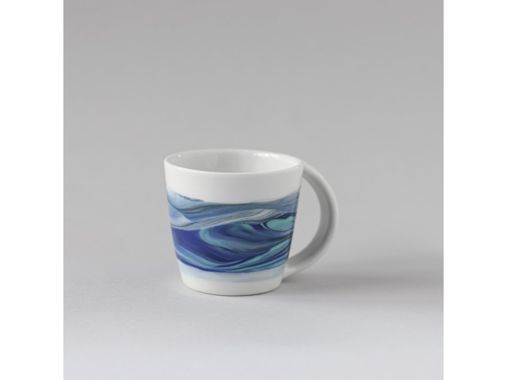 Podglazurní dekor na tomto hrnečku vám může připomínat obláčky, křivky horské krajiny, ale i převalující se vlny na mořské hladině. V každém případě, nápoje z něho budou chutnat výtečně!