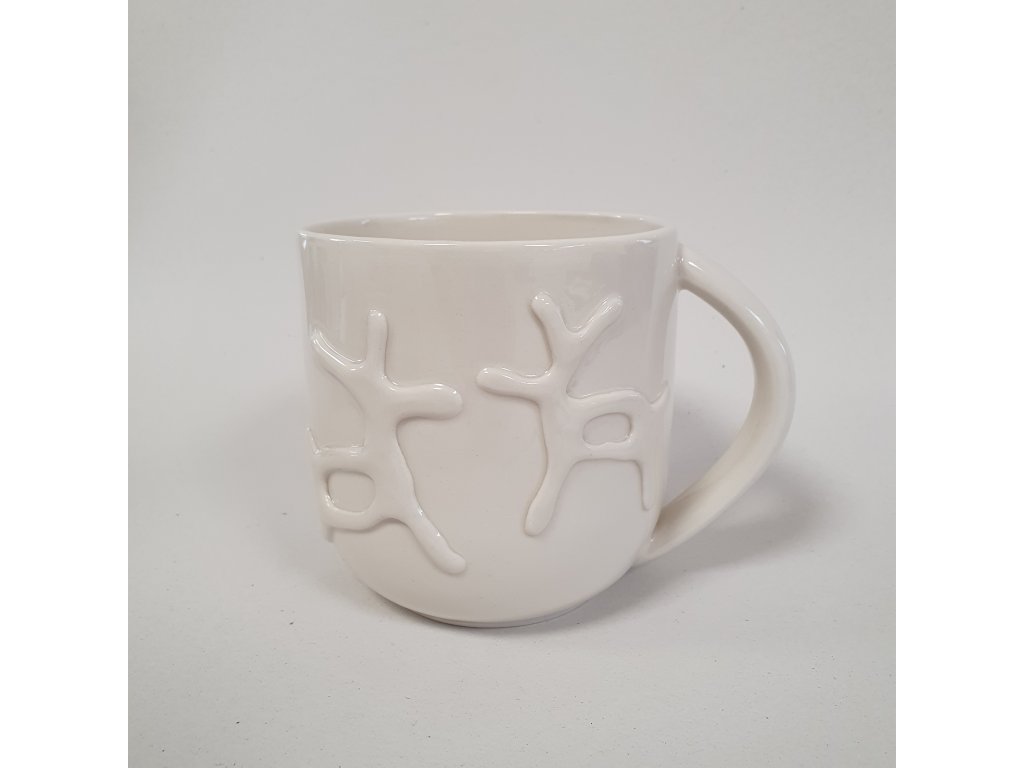 Je tvarovaný pouze ručními postupy, z kvalitního čistě bílého porcelánu. Do Vašeho života vnese radost, úsměv a hravost z horských luk v podobě neposedného stádečka sobů, kteří tvoří plastický reliéfní dekor po celém obvodu hrnku.
