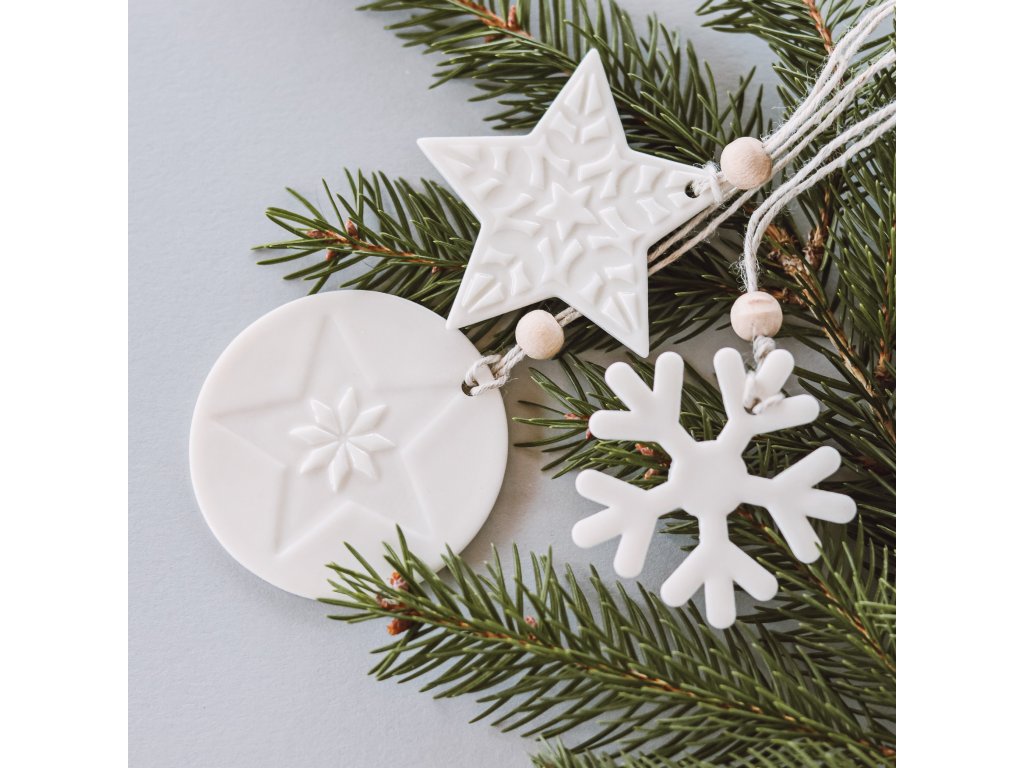 Vánoční ozdoby z porcelánu se na stromečku krásně vyjímají. Kontrast bílé a zelené barvy si určitě zamilujete.